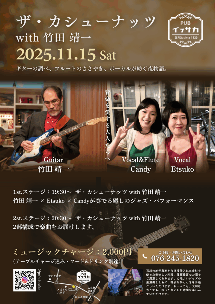 11月15日(土)は ザ・カシューナッツ with 竹田 靖一を開催