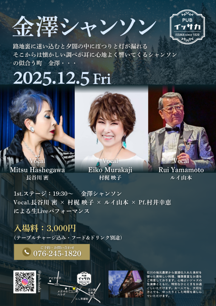 そこからは懐かしい調べが耳に心地よく響いてくるシャンソンの似合う町 金澤・・・