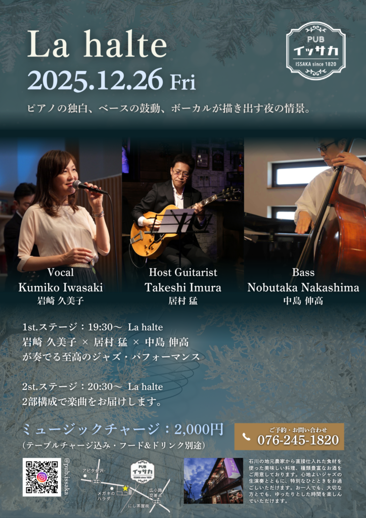 岩崎 久美子(Vocal) ✕ 居村 猛(Host Guitarist) ✕ 中島 伸高(Bass)のLiveステージ