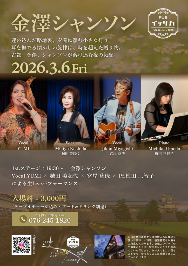3月6日(金)は 金澤シャンソン 開催✨