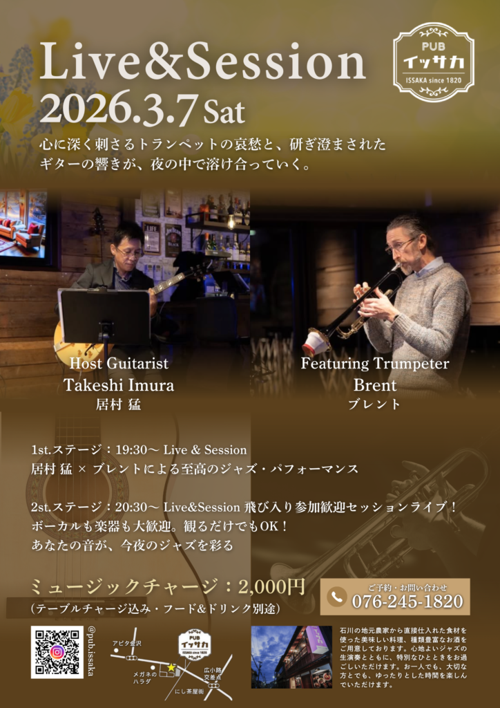 居村 猛(Host Guitarist) ✕ Brent(Featuring Trumpeter)による至高のジャズ・パフォーマンス
