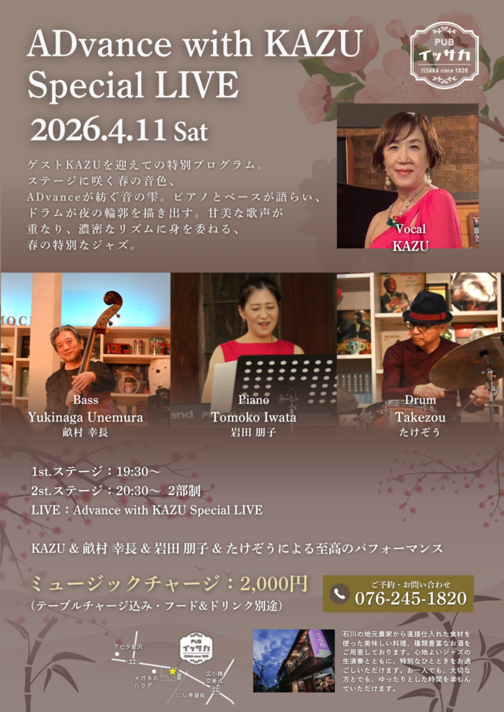 4月11日(土)はADvance with KAZU Special LIVEを開催