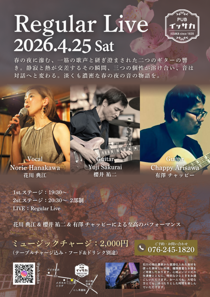 花川 典江(Vocal) ✕ 櫻井 祐二(Guitar) ✕ 有澤 チャッピー(Guitar)による至高のパフォーマンス